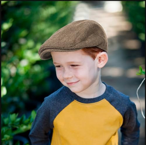 Kids Wool Flat Newsboy Cap - Vintage Tweed Pageboy Ivy Cap Cabbie Hat for Boys Girls Toddler (for 4-9 Years)