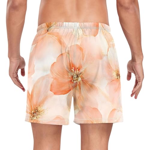 HOT ! xigua Watercolor Blush Flowers Mens Swim Trunks with Liner, 5 inch Quick Dry Mens Boardshorts for Beach