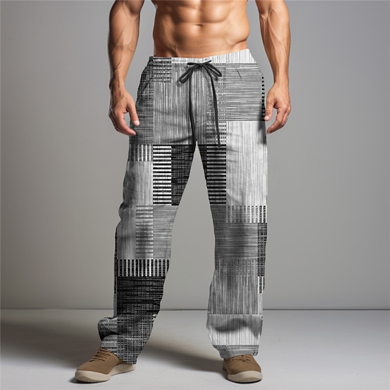 Highlights [Fabric] : Crafted from high-quality polyester, these men's casual pants offer a lightweight and breathable experience, ensuring comfort during both fall and winter seasons. The micro-elasticity of the material allows for ease of movement, making it perfect for everyday wear. [Fit & Style] : Featuring a regular fit and a straight-leg cut, these trousers are designed for versatility. A mid-waist with a drawstring enhances comfort and adjustability, ensuring a personalized fit. The pants come equipped with functional pockets, providing practicality without compromising on style. [Design Highlights] : The pants boast a striking 3D print design with geometric and stripe patterns in earthy shades of beige, brown, and dark blue. This patchwork design adds a latest and artistic flair, perfect for those looking to make a statement. The intricate pattern sets these trousers apart, adding to their visual appeal. [Occasions] : Ideal for street style, casual outings, or outdoor adventures, these trousers seamlessly blend comfort with style. Whether you're heading out for the day or lounging at home, they provide a laid-back yet fashionable look suitable for various settings. [Size Range] : Available in a wide range of sizes from S to 3XL, these pants are designed to accommodate varied body types. Choose from an array of colors, including orange, gray, yellow, green, and pink, to match your personal style. Perfect for everyday use. supreme materials and excellent craftsmanship ensure long-lasting durability.