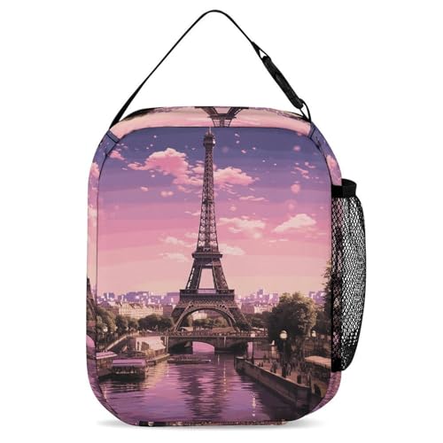 Pink Paris Backpack Set Lightweight Bag Lunch Box Pencil Bags for Women Men Bookbags 3 in 1