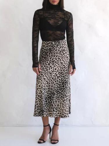 • Features: elastic hidden waistband; high waist; excellent drape feeling; vintage leopard printed pattern; no lining; lightweight and breathable; ankle length silk skirt for women; flared a line skirts.