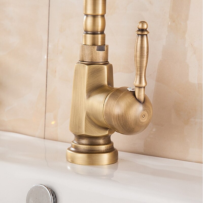 Kitchen Sink Mixer Faucet, 360 Swivel Single Handle Spring Kitchen Taps Deck Mounted, One Hole Brass Kitchen Sink Faucet Water Vessel Taps Retro Vintage 7
