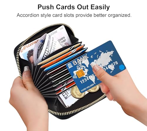Credit Card Holder Wallet, RFID Blocking Card Wallet for Women, Small Leather Card Case Wallet with Zipper Accordion Wallets, Patriotic American Flag Bald Eagle