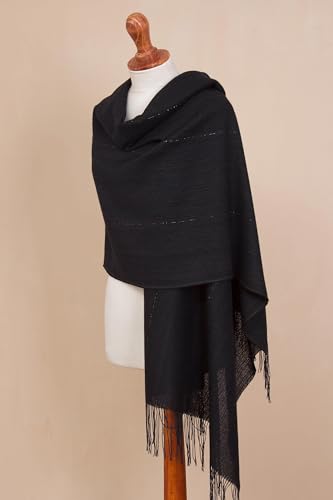 More information about NOVICA Artisan Handmade 100% Alpaca Shawl Midnight Blue Woven Fringed from Peru Wool Accessories Shawls Solid ' Deep Sky'