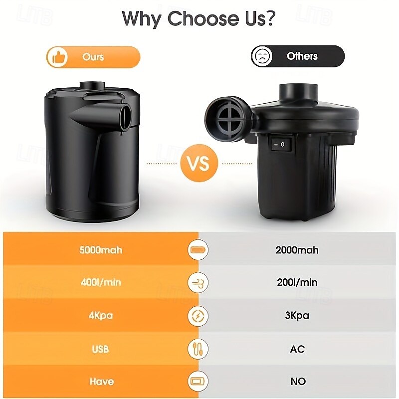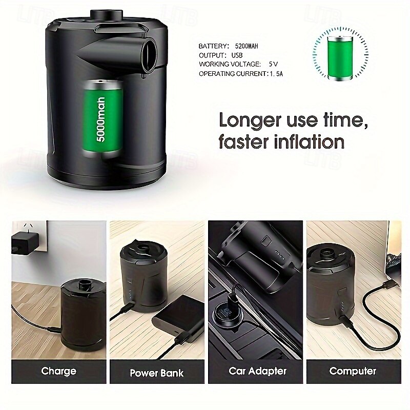 Why Choose 5200mAh Rechargeable Portable Wireless Electric Inflatable Pump - Dual-Purpose for Swimming Pool Air Mattress & More - Black?