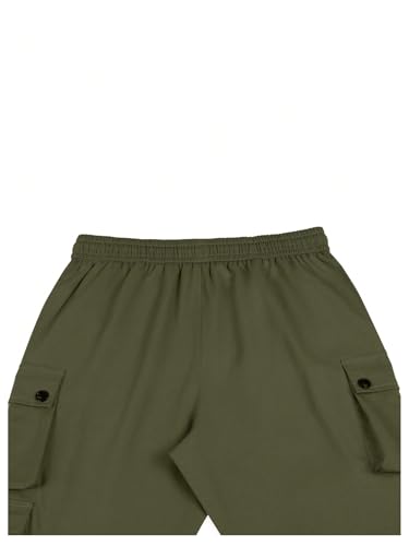 OYOANGLE Men's Drawstring Waist Flap Pocket Slit Hem Cargo Pants Outdoor Casual Trousers