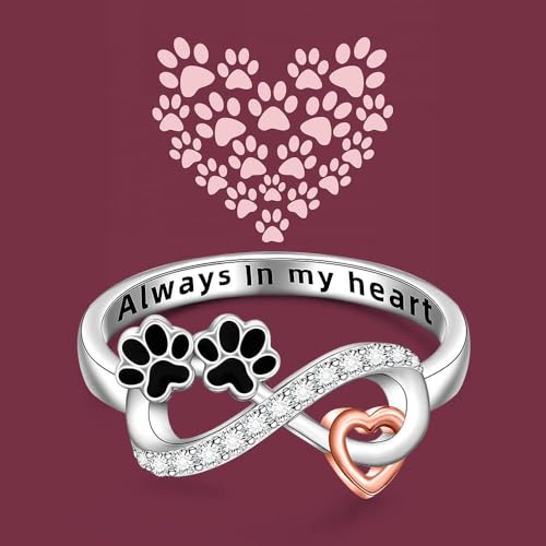 • ]UNIQUE DESIGN] Infinity knot and paw print combined design,show your love to your best friend! You wear this paw ring, no matter where you go, your pet seems to be by your side.