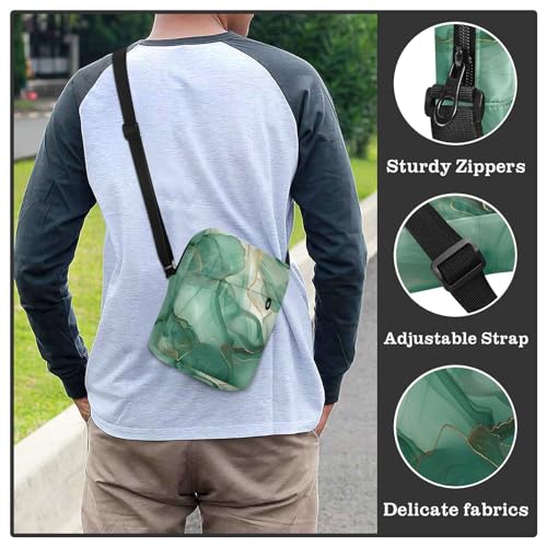 Crossbody Bag Green Gold Marble Messenger Bag for Women Men Purse Shoulder Bag Satchel Bag with Adjustable Strap 214B4107