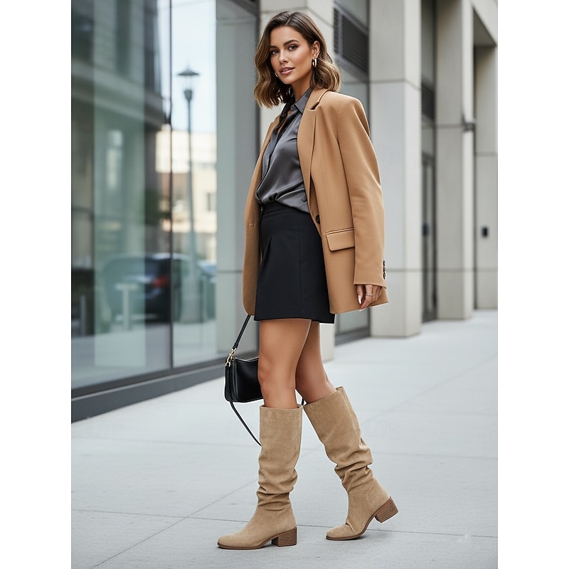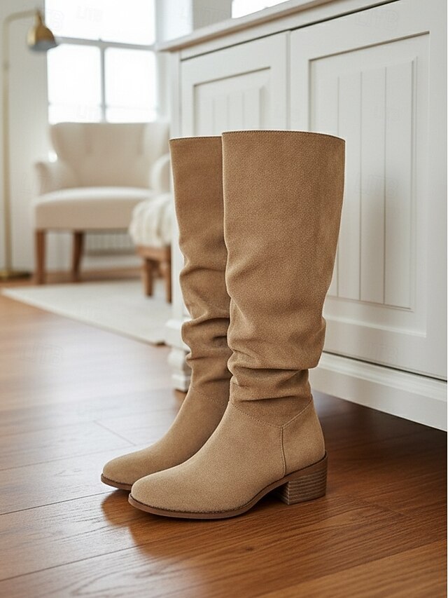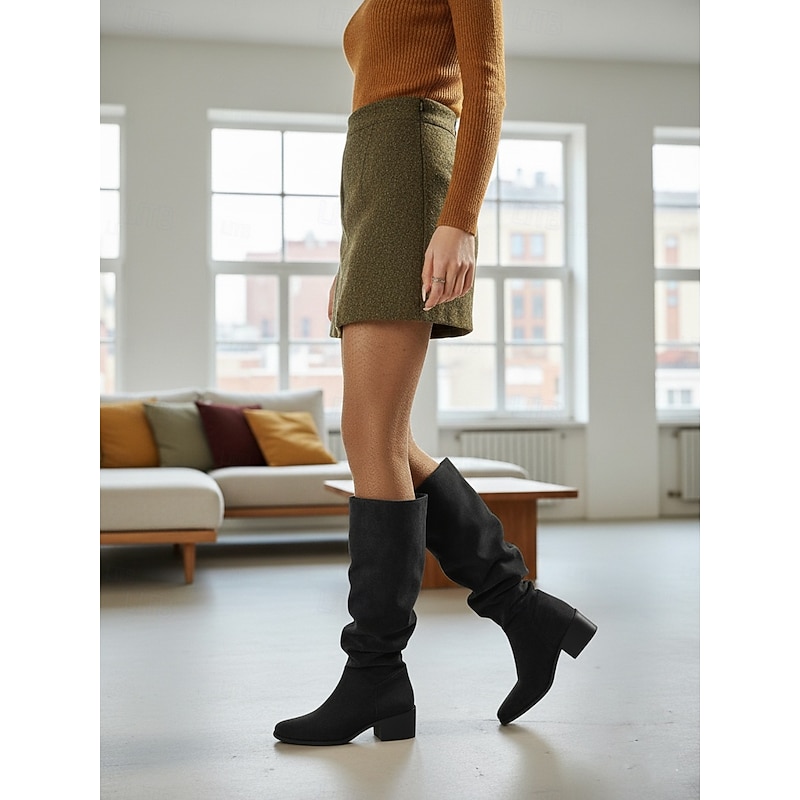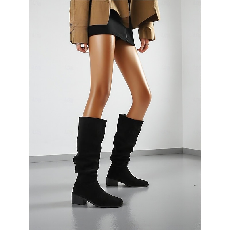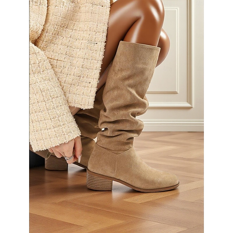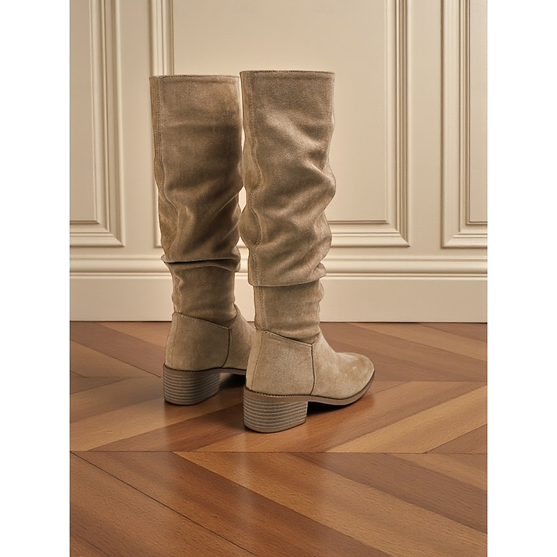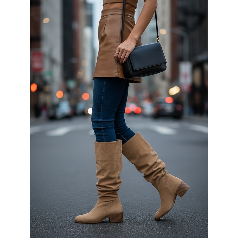 Why Choose Women's Wide Calf Suede Slouchy Knee High Boots with Low Block Heel -Casual supple Footwear for Fashionable Urban Streetwear and Everyday Outfits?