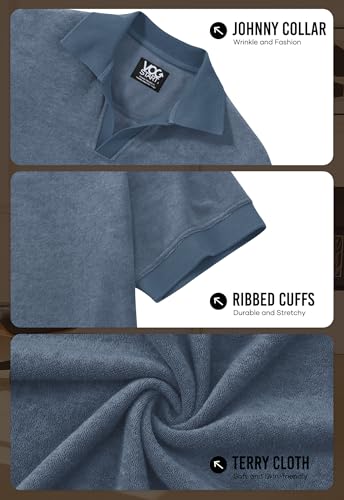 Fabric type: 100% PolyesterCare instructions: Machine WashOrigin: ImportedClosure type: ButtonPOLO SHIRT: Men's short sleeve polo shirts are always a hot weather favorite. The clean lines and subtle texture add a touch of sophistication, perfect for those who appreciate fashion. That never goes out of style.COMFY FABRIC: Our casual polo tops with high-quality soft terrycloth fabric that is absorbent, breathable and stretchy, making you feel relaxed and comfortable all day long.DETAIL: Featuring with v neck, johnny collar, side split and solid color. This lightweight terry cloth polos provides suitable thickness makes it perfect for layering or wearing on its own.OCCASIONS: Perfect for summer and late spring, as this casual buttonless polo collar shirt provides comfortable without being over warm by suitable thickness. Appropriate choice for daily, outdoor, beach, exercise, commuting, office, dating, and etc.AFTER-SALES SERVICE: If you have any dissatisfaction or questions about our products, VOGSTART will try its best to solve your problems and provide you with a pleasant shopping experience. Perfect for everyday use. High quality materials and excellent craftsmanship ensure long-lasting durability.