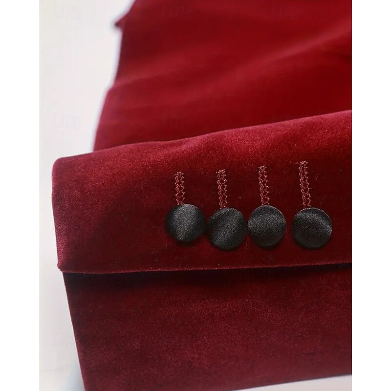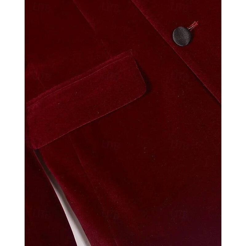 More information about Men's Blazer Business Cocktail Party Wedding Party Fashion Casual Spring Autumn / Fall Polyester Color Block Pocket Buttons Comfortable Single Breasted Blazer Red