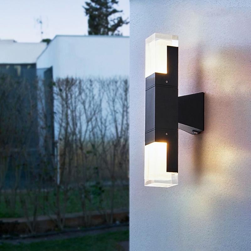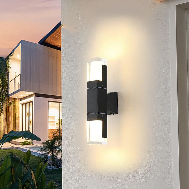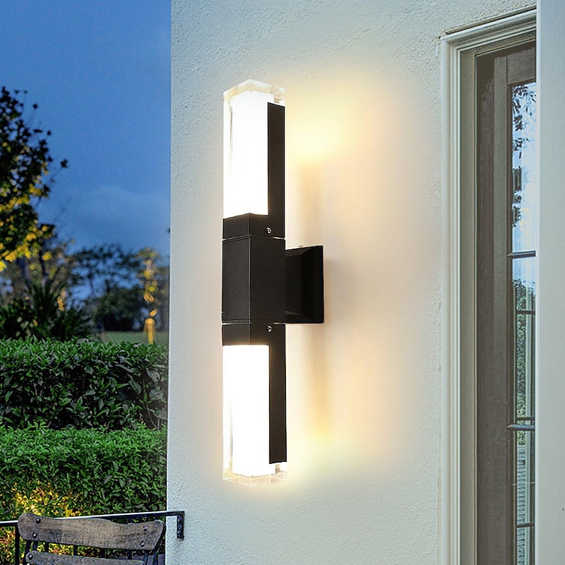 LED  Wall Sconce Outdoor Black Metal Up Down Light Fixture IP65 Waterproof Aluminum Sensor Wall Lantern for Porch Patio Garden 85-265V 19