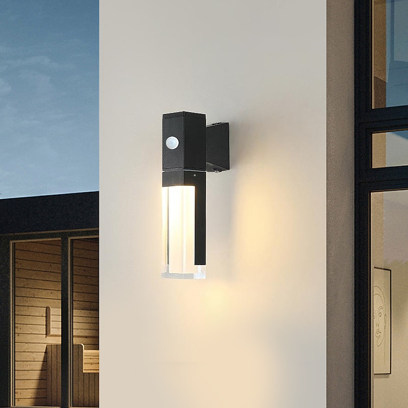 LED  Wall Sconce Outdoor Black Metal Up Down Light Fixture IP65 Waterproof Aluminum Sensor Wall Lantern for Porch Patio Garden 85-265V 8