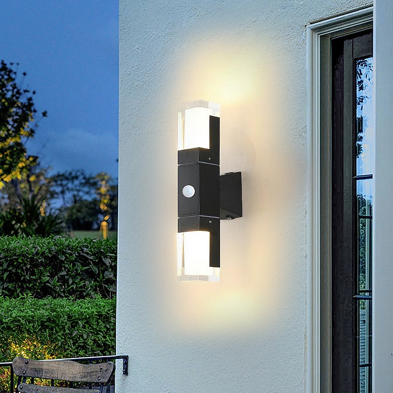 LED  Wall Sconce Outdoor Black Metal Up Down Light Fixture IP65 Waterproof Aluminum Sensor Wall Lantern for Porch Patio Garden 85-265V 20