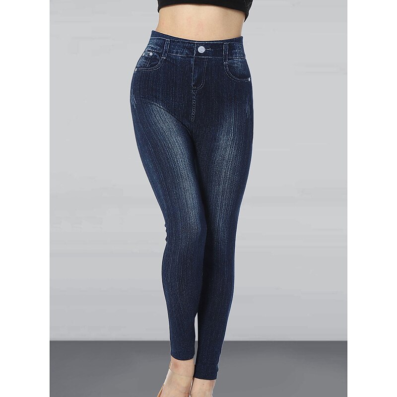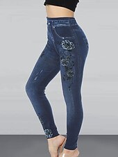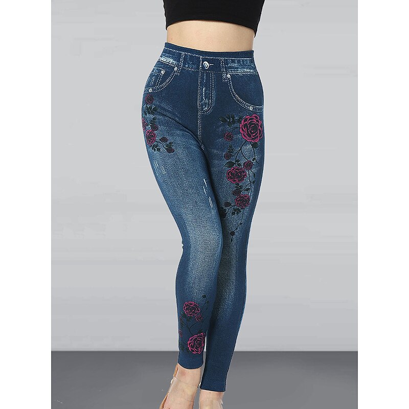 Highlights [Fabric] These women's leggings are crafted from a high elasticity cotton and faux denim blend, providing the look of denim with the breathable comfort of leggings. The fabric ensures a snug, flexible fit that moves with you while maintaining its shape. [Fit] Designed with a high-waisted cut, these slim, ankle-length leggings are perfect for enhancing your silhouette. The high waist offers both style and support, giving a flattering fit that hugs and shapes the body. [Design Highlights] Featuring a denim-inspired print with delicate floral motifs and functional side pockets, these leggings combine casual streetwear style with a touch of elegance. The intricate patterns emulate the appearance of jeans, ideal for those who love denim aesthetics but prefer the comfort of leggings. [Occasions] Suitable for summer and fall, these leggings are perfect for various occasions such as casual outings, daily wear, and streetwear events. They effortlessly transition from day to night, making them a versatile addition to any wardrobe. [Size Range] Available in a wide range of sizes from S to 2XL, these leggings cater to different body types, ensuring a comfortable and fashionable fit for everyone. Perfect for everyday use. superior materials and excellent craftsmanship ensure long-lasting durability.