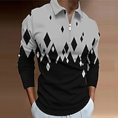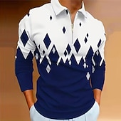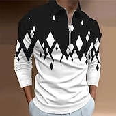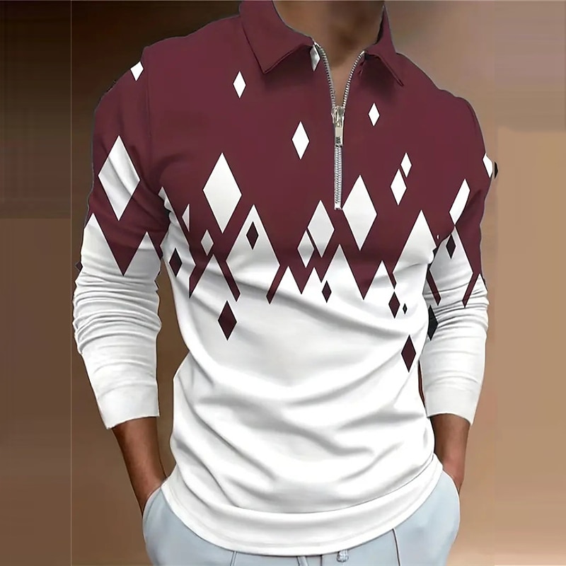 More information about Men's Geometric Zip Polo Shirts Golf Shirt Long Sleeve Polo Shirts Collared Shirts Casual Vacation Wear Formal Wear Festival Wear 3D Print Quarter Zip Polo Spring & Summer Black Wine Navy Blue