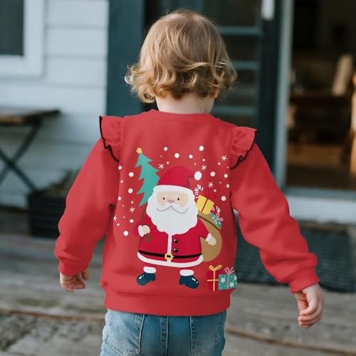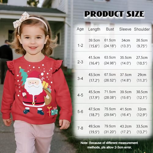 Christmas Girls Pullover Sweatshirts Size 1-8 Years Long Sleeve Shirts velvety Ruffle Sweatshirt Toddlers