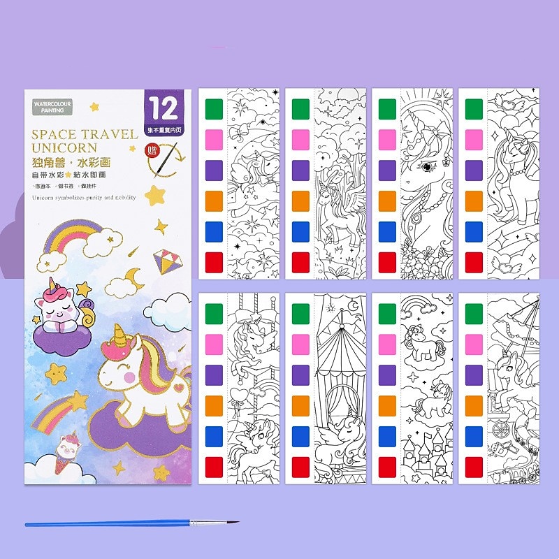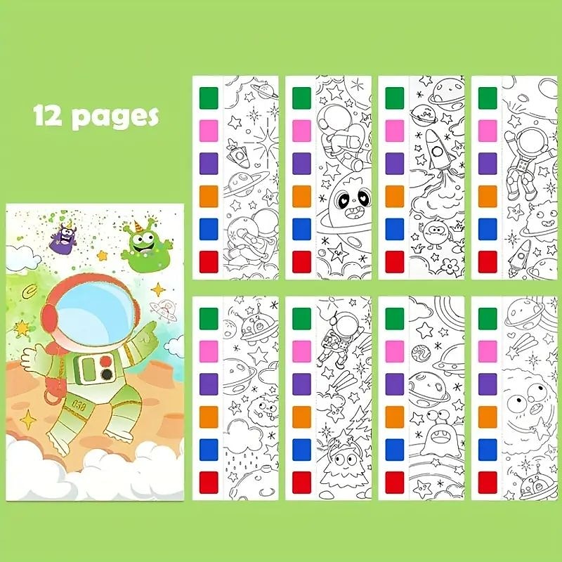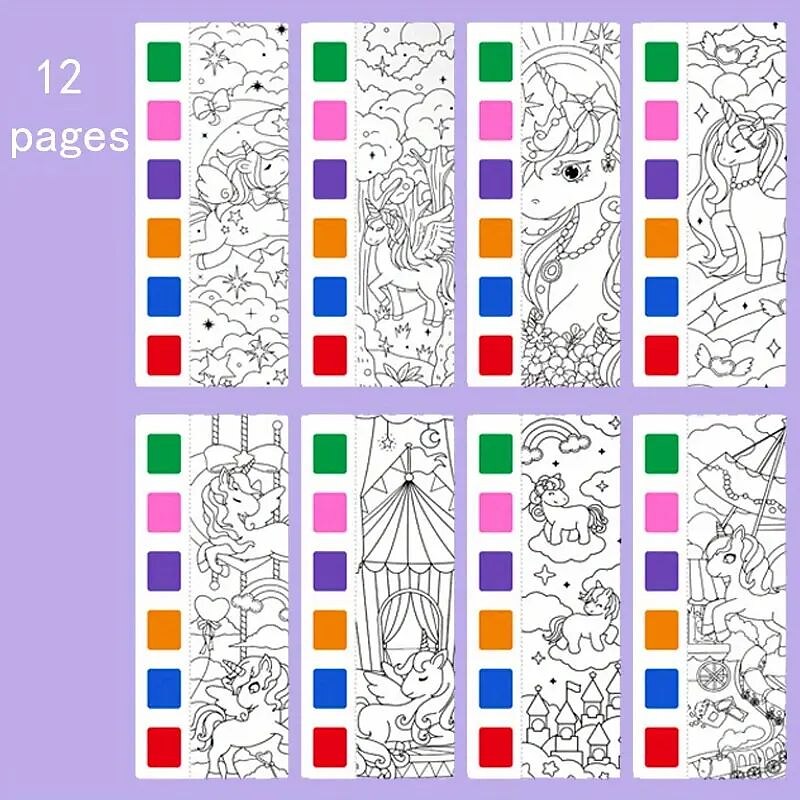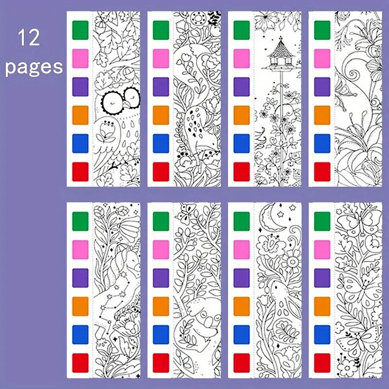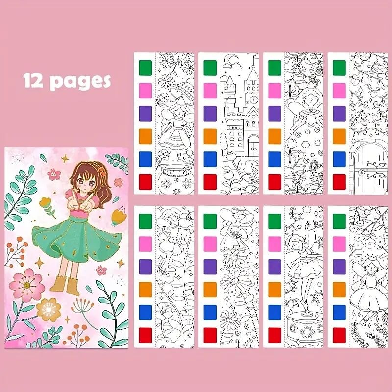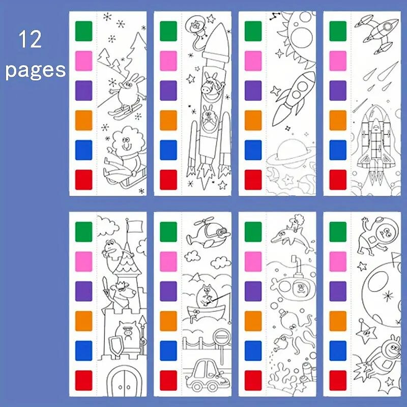 12pcs Children's Watercolor Coloring BookStudent Coloring And Drawing BookDrawing And Coloring Paper With Built-in Watercolor Paint PensImproving Children's Focus 12