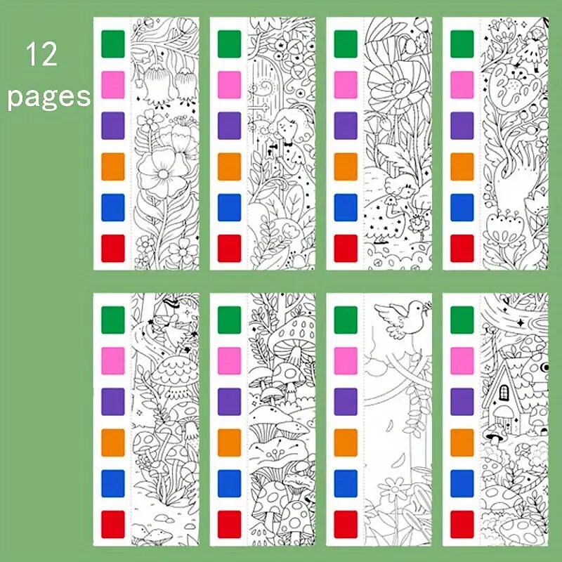 12pcs Children's Watercolor Coloring BookStudent Coloring And Drawing BookDrawing And Coloring Paper With Built-in Watercolor Paint PensImproving Children's Focus 9