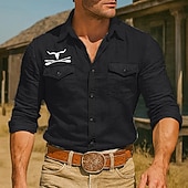 More information about Men's Cow Print Western Shirt Button Up Shirt Cowboy Shirt Long Sleeve Vintage Retro Outdoor Holiday Summer Spring Fall Turndown Collared Shirts Front Two Pockets Black White