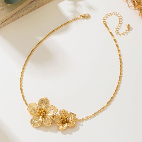 Gold Flower Necklace for Women Chunky Gold Floral Pendant Necklace Statement Flower Choker Jewelry for Women