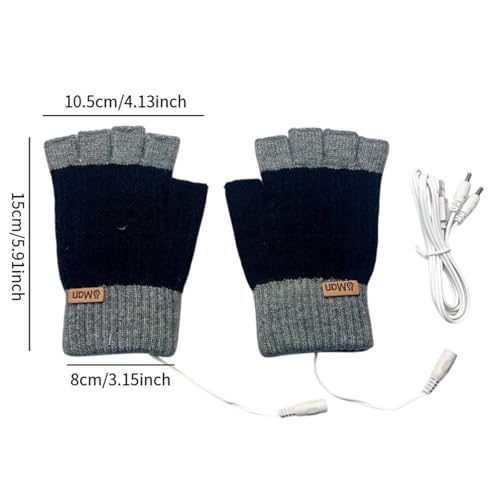 USB Heated Gloves Fingerless Electric Heating for Computer Gaming Office Work Typing Winter Hand Warmers- Black 6
