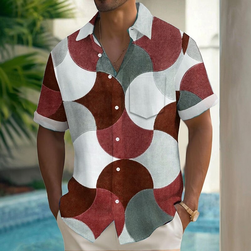 Why Choose Men's Geometric Color-blocking Shirt Summer Shirt Button Up Shirt Short Sleeve Fashion Casual Outdoor Vacation Dailywear Summer Spring Turndown 3D Print Collared Shirts Front One Pocket Red Blue?