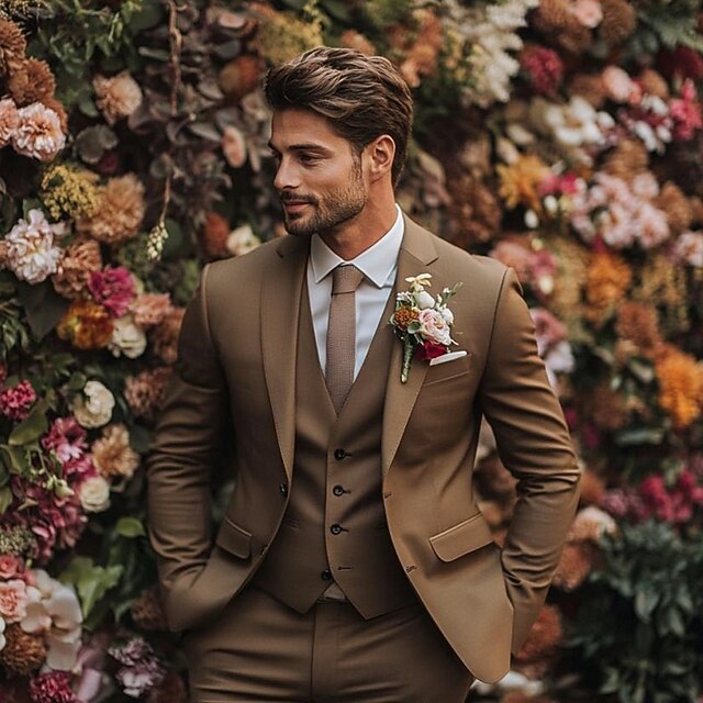 $129.99 - Men's Wedding Business Party Suits Notch Lapel Brown Daily Formal Solid Colored Slim Fit 3 Piece Single Breasted Two-buttons 2025. Shop for cheap Wedding Suits online? Buy at lightinthebox.com on sale today!