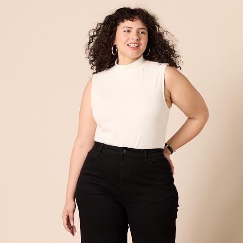 trending ! Amazon Essentials Women's Mock-Neck Slim-Fit Rib-Knit Sleeveless Top, Pack of 2