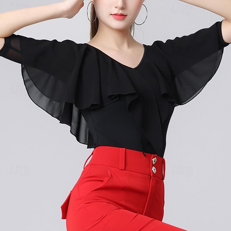 $43.99 - Latin Dance Ballroom Dance Top Ruffles Pure Color Splicing Women's Performance Training Half Sleeve High Polyester / Cotton Blend 2025. Shop for cheap Tops & Sets online? Buy at lightinthebox.com on sale today!