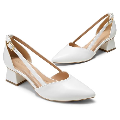 Arromic Women's Low Chunky Heels Pointed Closed Toe Pumps Buckle Chunky Block Heel Dress Slip On D'Orsay Wedding Party Office Shoes