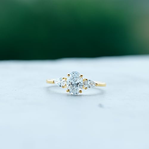 HOT ! Certified Lab Grown Diamond 3 Stone Engagement Ring, Ef-Vs Quality, Diamond Past Present Future Ring - Ideal for Gift