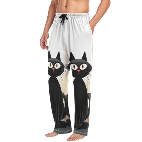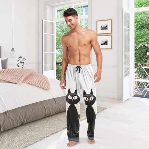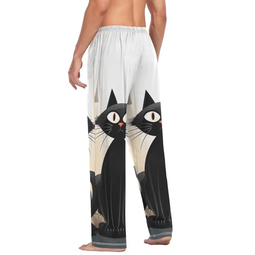 HOT ! Lounge Pajama Pants for Men Elegant Cat Men's Sleep Bottoms Pants with Drawstring, S
