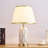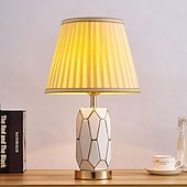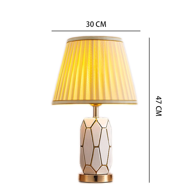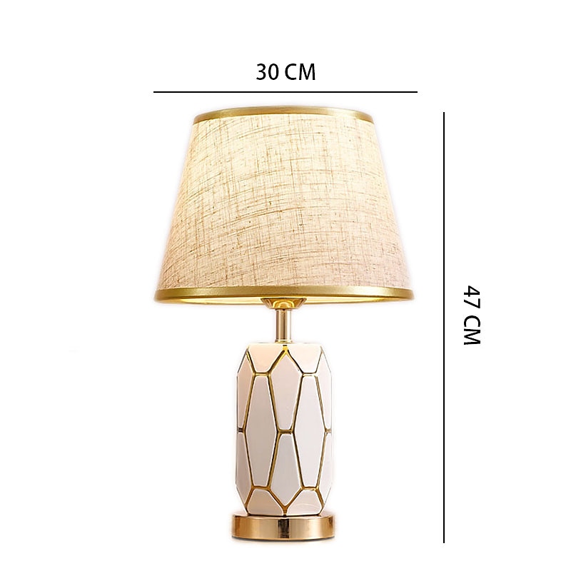 More information about Hand-Painted Gold Glazed Ceramic Table Lamp Gorgeous Bedroom Bedside Lamp with Barrel-Shaped Lampshade Traditional Vase Bedroom Desk Lamp 47 * 30 Cm 85-265V