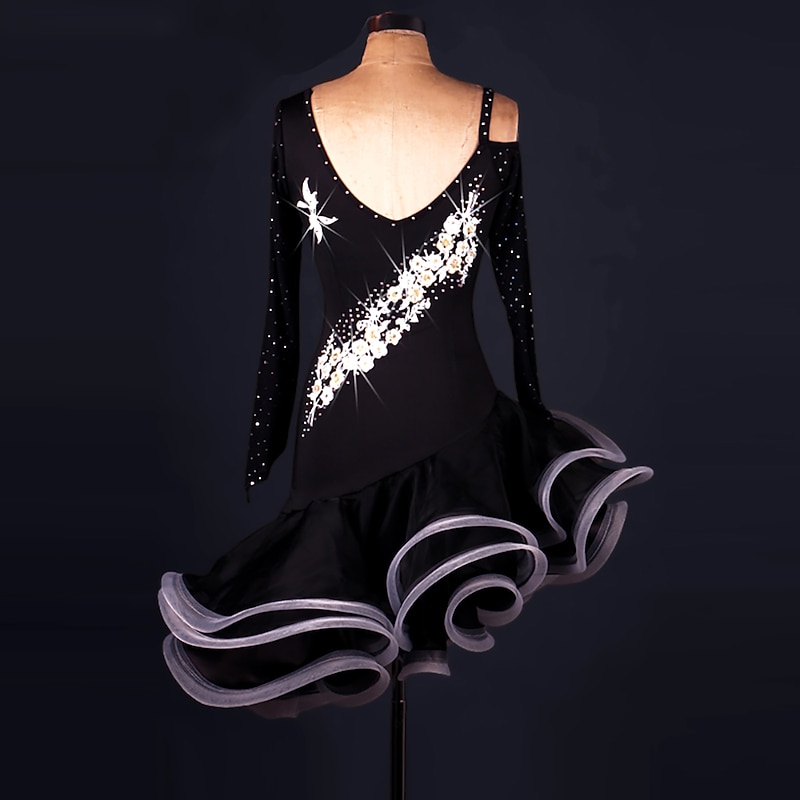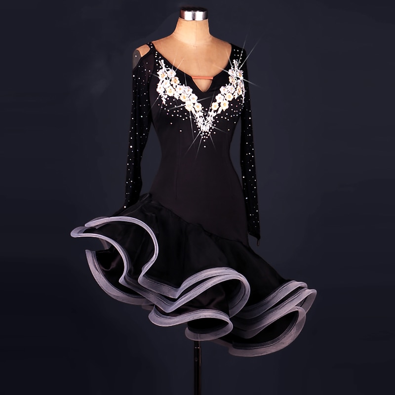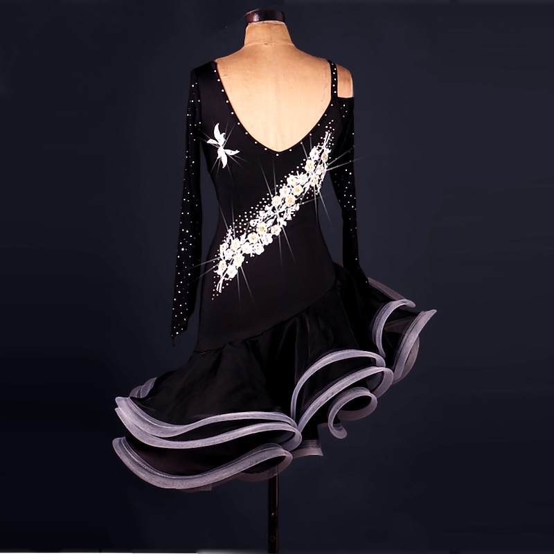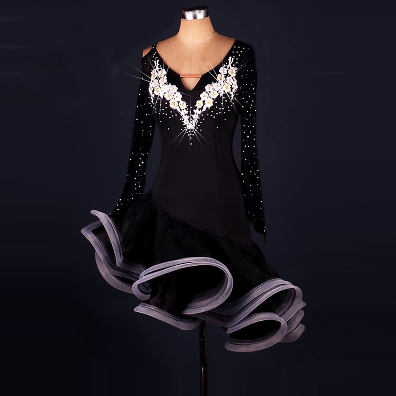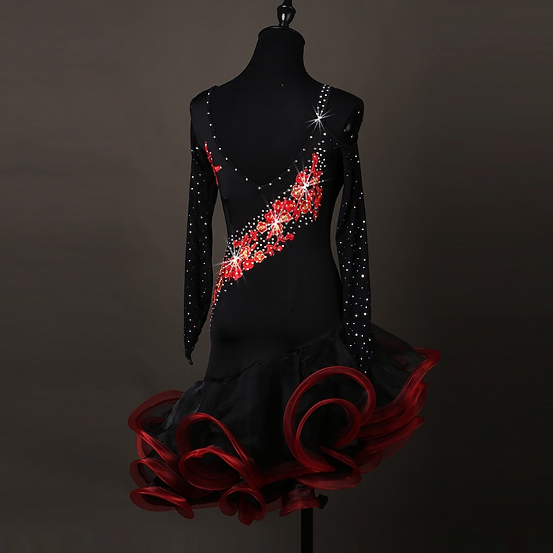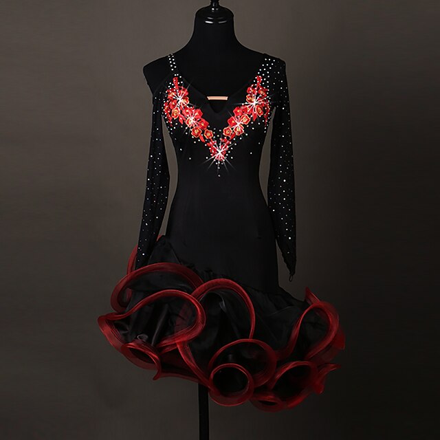 More information about Dance Salsa Latin Dance Dress Crystals / Rhinestones Women's Training Performance Long Sleeve Spandex Organza