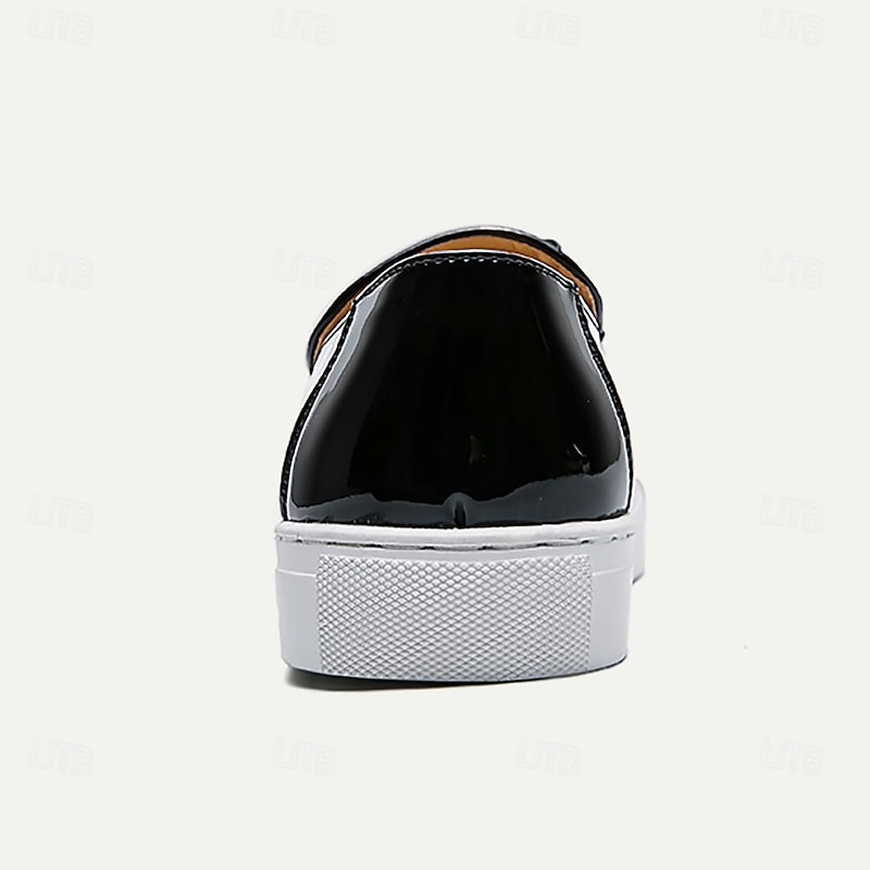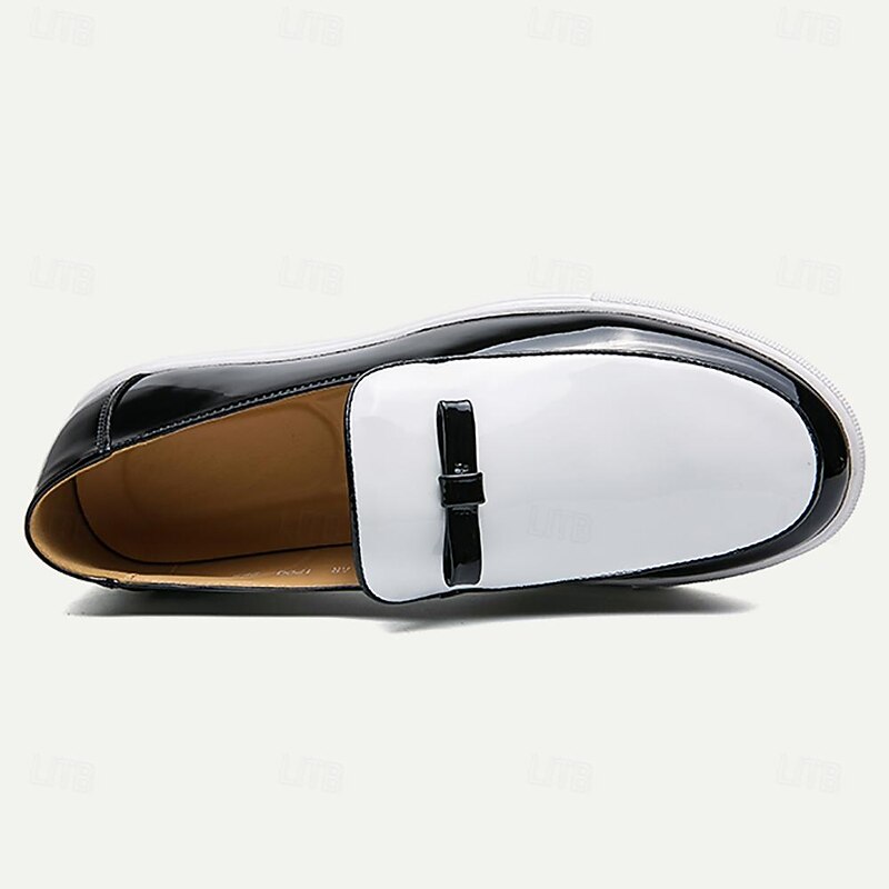 Men's Black and White Patent Faux Leather Loafers with Bow Detail – contemporary Slip-On Dress Shoes for Formal Events and Parties