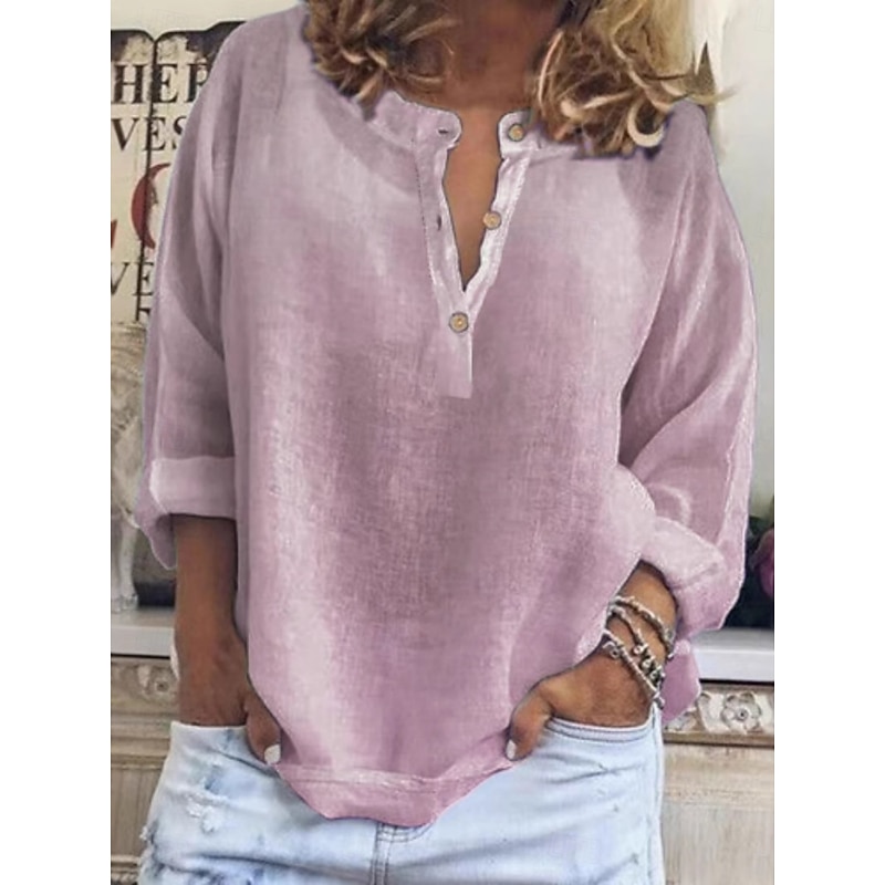 More information about Women's Shirt Plain Basic Casual Long Sleeve Crew Neck Regular Tops Daily Buttons White Blue Purple Khaki Summer