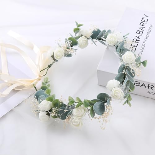 Why Choose June Bloomy Greenery Leaf Crown Rustic Wedding Headpiece Bridal Headband Photo Prop (White Babysbreath)?
