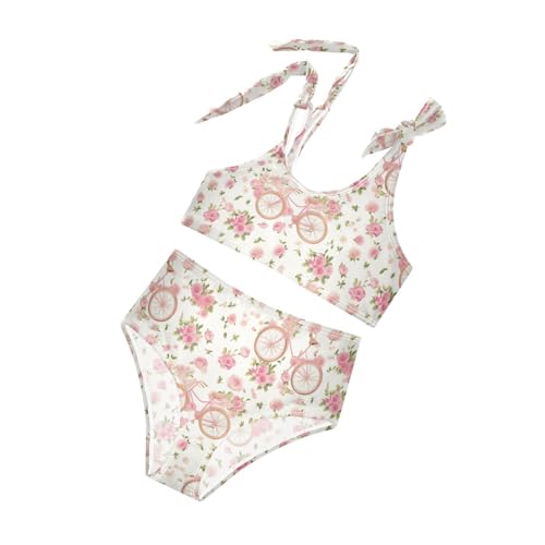 Wusikd Vintage Pink Bicycle Girls Swimsuits Two Piece Roses Swimwear Bikini Set for for Girls Size 3T