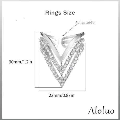 Ring size: AdjustableMaterial: ['Silver plated', 'Cubic Zirconia']Metal type: Gold plated bronzeGem type: Cubic Zirconia【V Shaped Statement Ring】: The silver plated V shaped rings are an wonderful way to dress up any look. Simple yet eye-catching design makes the ring an instant standout.【Material】: This ring are constrcted of silver plated and 5A cubic zirconia to make sure it has a long-lasting and bling appearance. which is lead-free, eco-friend and hypoallergenic to protect your health.【Adjustable Ring】This ring are all adjustable, you can adjust the size according to your fingers after actually wearing it and adjust it to the most comfortable size for wearing. Luxury and vintage, perfectly match your various wearing style, make you the focus in the crowd.【PERFECT GIFT】:We love jewelry, we believe it's more than just Jewelry, it's a lifestyle. This ring perfect for wedding, engagement, anniversary, graduation, party, prom, etc.【Good Customer Service】: Aloluo is committed to provide the best jewelry and the best services to our customers. If you have any problem, please feel free contact us by Mail, we will answer within 24 hours. Perfect for everyday use. supreme materials and excellent craftsmanship ensure long-lasting durability.