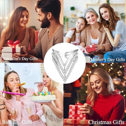 Layered V Shaped CZ Statement Ring for Women Gold Plated Cubic Zirconia Expandable Adjustable Boho Finger Rings Comfort Fit Dainty Birthday Wedding Cocktail Party Jewelry Gifts