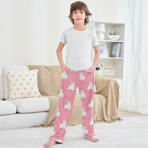 HOT ! Boy's Pj Pants Happy Alpaca Unicorn Horn Lounge Bottoms Elastic Waist Kids Joggers with Pockets Size 6-14