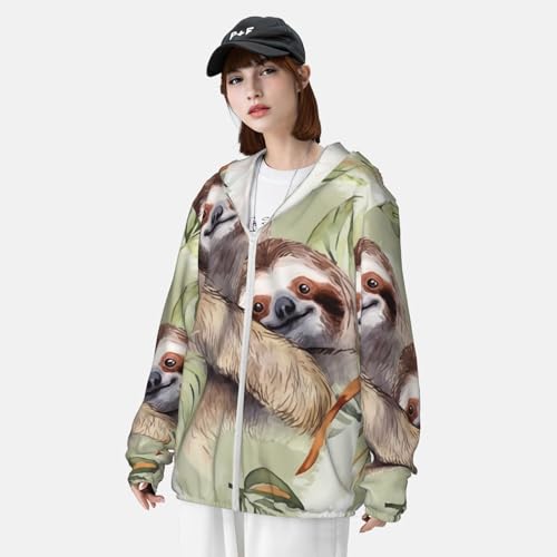 HOT ! Men's Sun Protection Hoodie UPF 50+ Watercolor Sloth Rash Guard Long Sleeve Women's Sun Shirts Lightweight