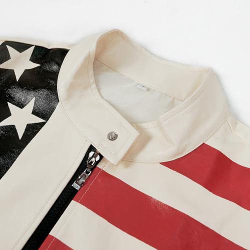 More information about Men's Faux American Flag Leather Jacket Lightweight Casual US Outwear Coat
