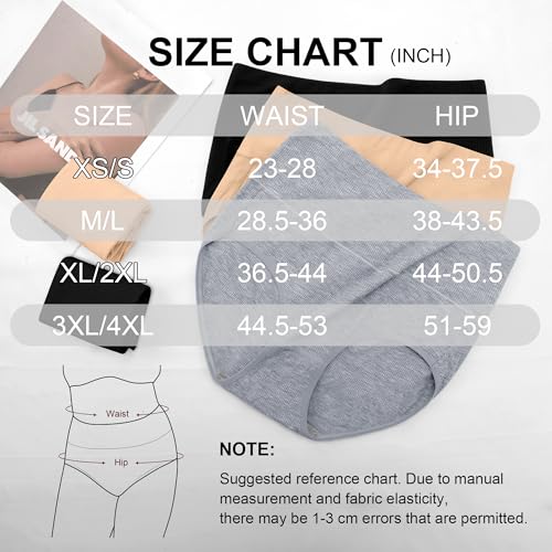 Fabric type: 90% Combed Cotton,10% Spandex blended fabricCare instructions: Hand Wash or Machine WashOrigin: ImportedJoin Prime Cancel anytimeComfy Cotton Underwear: Made from premium organic cotton, Asbestt ladies underwear panties ensures a lasting fit, offering better feeling than nylon fabric to keep you fresh and dry all day. tender women Briefs wrapping around your natural curves, move with you, keeping you feel freedom and confident. Avoid embarrassing adjustment during the day, especially when working out at the gym, running errands. Nice alternative to traditional “granny panties”Full Coverage Panties: The high waisted briefs are stretchy, non rolling, and form-fitting, offering full coverage and support. Designed for all-day comfort, you’ll feel like you’re wearing nothing, these cotton panties reduce the appearance of muffin top without adding bulky. Asbestt full-coverage hipster panties offer natural support with a smooth, cloud-like fit that minimize binding and bunchingRegular & Plus Size: Multiple sizes are available, XS/S(waist:23-28, hip:34-37.5); M/L(waist:28.5-36, hip:38-43.5); XL/2XL(waist:36.5-44'', hip:44-50.5); 3XL/4XL(waist:44.5-53, hip:51-59). Ideal for daily wear and postpartum recovery.These high waisted postpartum underwear feature a high waistband that sits above the belly button and scars. A good choice for recovery after c-section, post maternity healing, and for senior comfortDouble Layer Crotch: The 100% cotton crotch not only care for privacy area and preventing irritation, ensuring all-day comfort and hygiene.The leg openings are wrapped in cotton covered elastic that won't dig into your thighs or pinch your butt area. It can hold comfy panties for women in place, solving the problems like slipping or riding up. Even during long time of sitting, with no pressure or irritationA Must Have Underwear: Easy to match with high-waisted jeans, pants or dresses. Perfect for personal use or as a gift for your mom, sister, or female friends. Plus, our breathable cotton ladies underwear are machine washable or hand washable. Please tumble dry at low temperature or hang to dry (Max 30°C). With our panties for women pack series, there’s always something to suit you. For any questions, our customer service team is ready to help Perfect for everyday use. supreme materials and excellent craftsmanship ensure long-lasting durability.