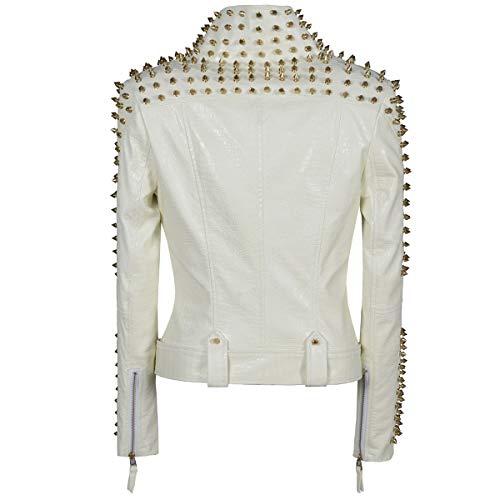 • CHARACTERISCIC:Women's leather jacket,Front asymmetrical zipper closure, perfect fit,Long sleeve。Studded rivet on Front lapel,sleeve,shoulder and back.Give you unprecedented new experience.