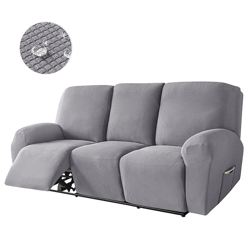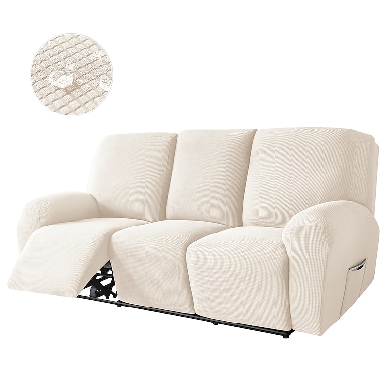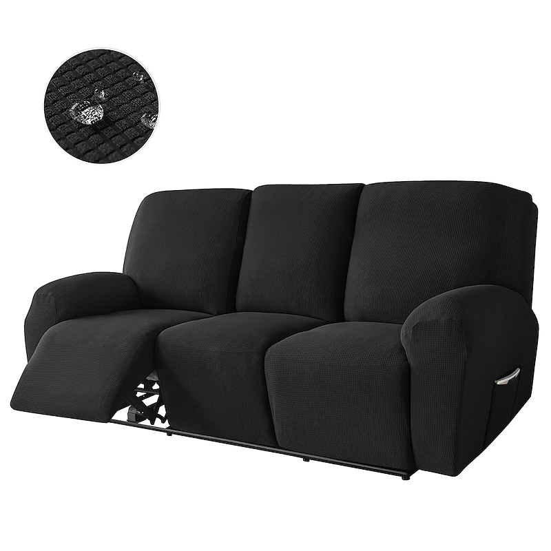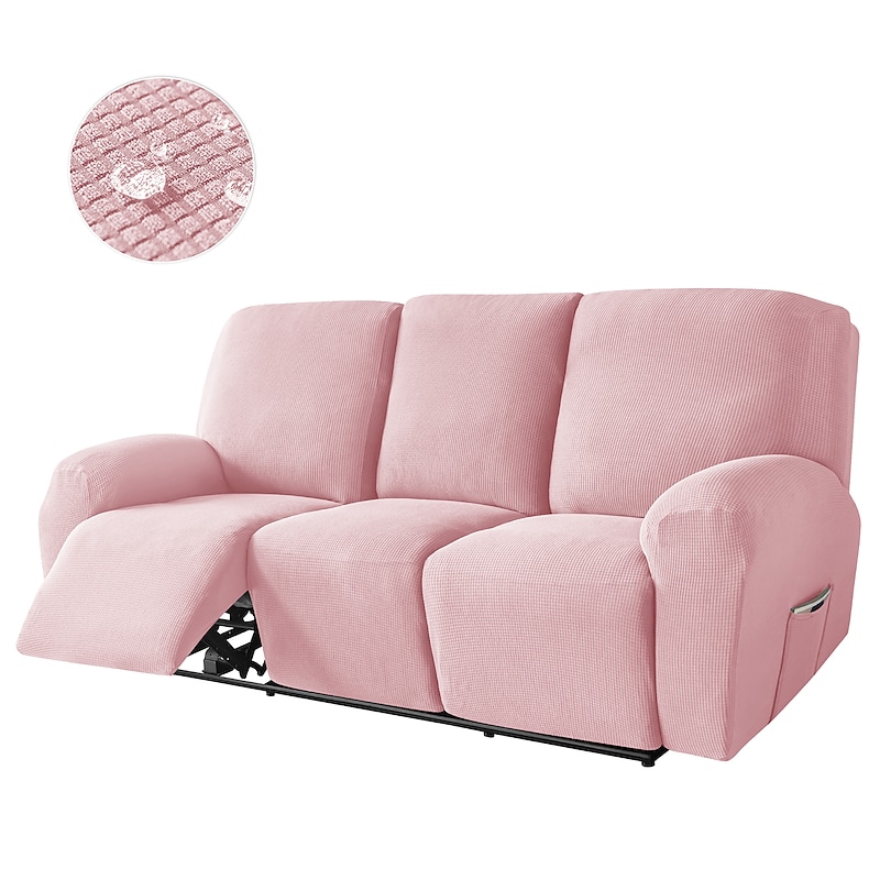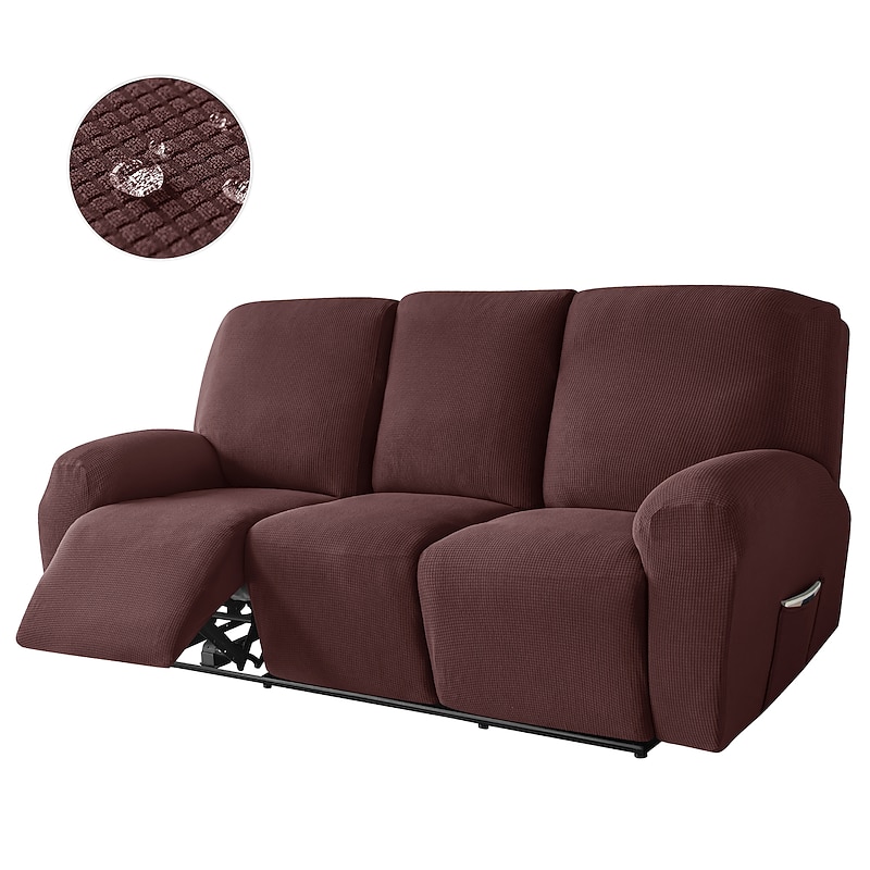 3 Seater Stretch Reclining Couch Covers Burgundy Waterproof Recliner Couch Covers with Side Pocket 8-Pieces Set,Non Slip Recliner Chair Cover for Standard 3 Seater Recliner, supple Thick Check