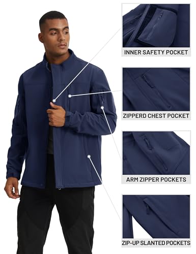 • Fabric:This fleece lined jacket for men is made of 50D high-density composite abrasion resistant fabric with outer soft shell.(Face:90% polyester & 10% spandex,lining:polyester)