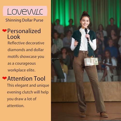Origin: ImportedClosure type: SnapLining: NylonItem Display Dimensions: 8.07 x 2.17 inchesElevate your style with LoveWLC's money clutch purse for women, featuring a dollar bill print and rhinestone embellishments for a luxurious touch.Shine bright like a diamond at any evening event with this bling purse for women. The rhinestones reflect light beautifully, adding a touch of glamour to your outfit.Made from high-quality plastic, this money bag purse is designed in a sleek rectangular shape, giving it a sophisticated and elegant look.Perfectly sized to fit your essentials such as phone, lipstick, cash, and cards, this shoulder handbag is convenient to carry around for any occasion.Looking for a stylish gift for a lady who loves to party? Look no further than this money clutch purse, sure to enhance her charm and allure at every gathering. Perfect for everyday use. supreme materials and excellent craftsmanship ensure long-lasting durability.