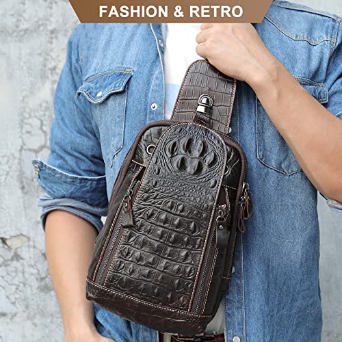 Men's Crocodile Pattern Leather Casual Daypack Genuine Leather Sling Bag Backpack Crossbody Shoulder Bag Chest Bag 6
